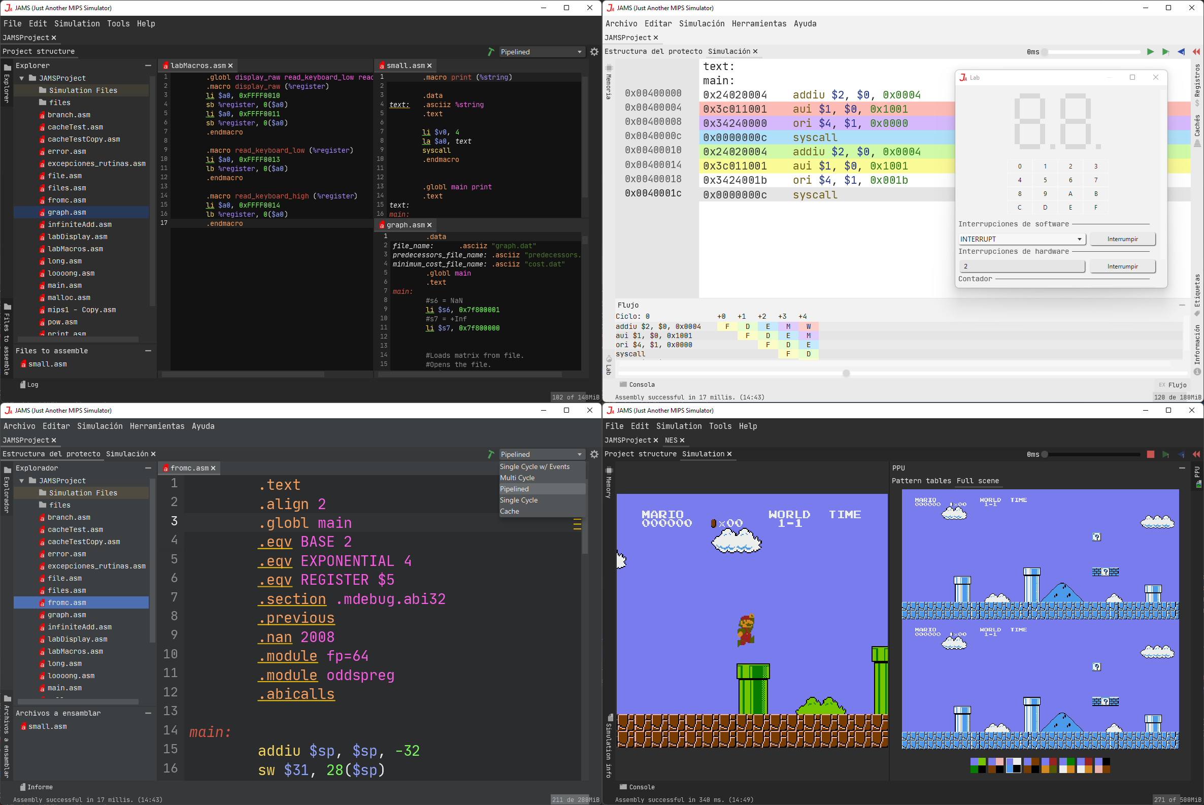 JAMS (Just Another MIPS Simulator) started as an educational tool but evolved into a fully-fledged IDE Platform. It represents the combined work of two Bachelor’s Theses: one focused on the Core Architecture and MIPS implementation, and the other on the Plugin System and NES integration.